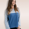 Dieses locker sitzende Langarm-Shirt besteht aus Bio-Baumwolle und Bambus. Es ist horizontal unterteilt, hat einen gestreiften oberen und einen einfarbigen unteren Teil.