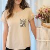 Dieses eher lang geschnittene T-Shirt hat einen schön abgerundeten Saum und eine auffallende Brusttasche. Die Ärmel wurden hochgekrempelt mit der schönen Seite aussen und festgenäht. Das T-Shirt ist bequem auf der Haut und besteht aus 95% Baumwolle und 5% Elasthan und kann für viele Gelegenheiten getragen und kombiniert werden.