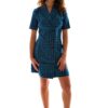 Grau mit weiss Nadelstreifen Kleid mit zugeschnittenen Details wie doppelt gereihte Knöpfe und Blazer Kragen mit Reverse.